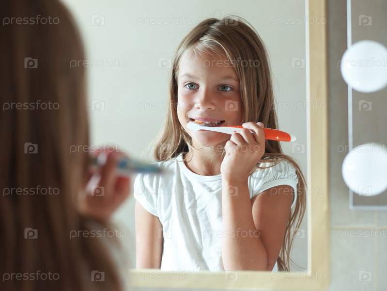 Девочка чистит зубы