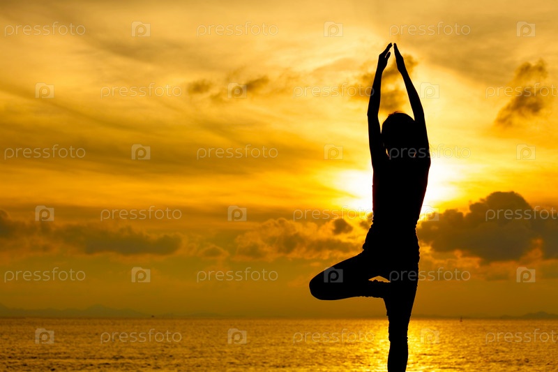 Женщина заниматься йогой на закате