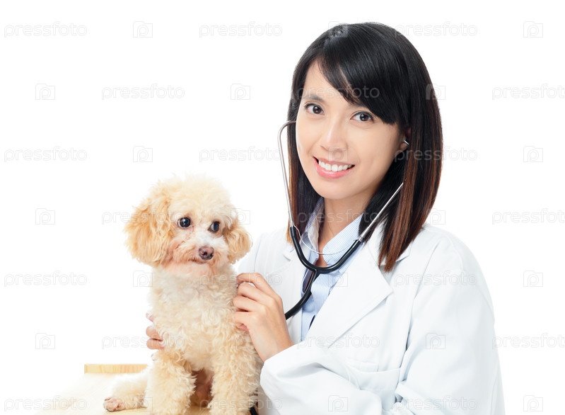 Ветеринар осматривает пуделя