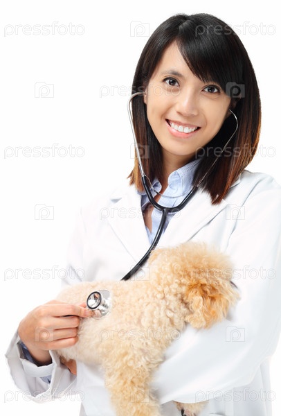 Ветеринар осматривает пуделя