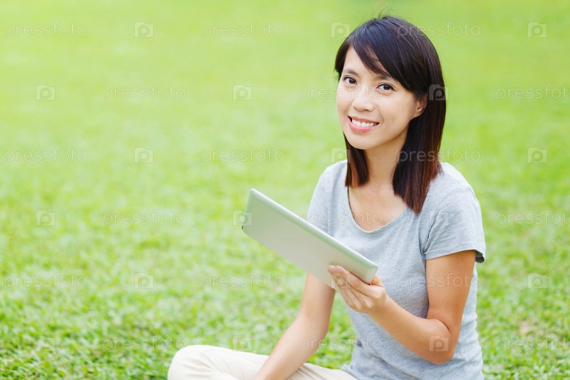 Азиатская женщина с планшетом