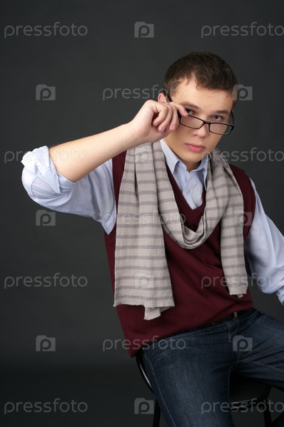 Портрет молодого человека в очках, на темном фоне