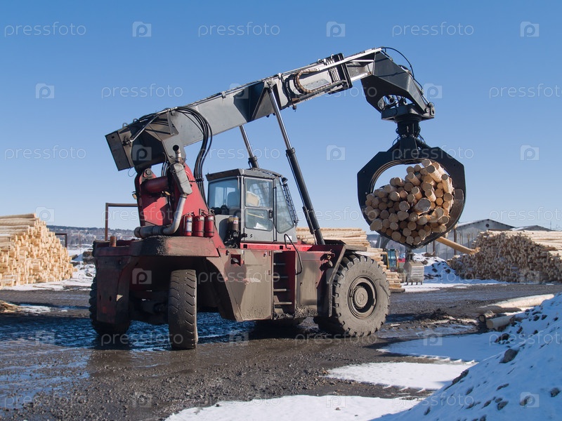 Погрузчик на территории деревообрабатывающего предприятия