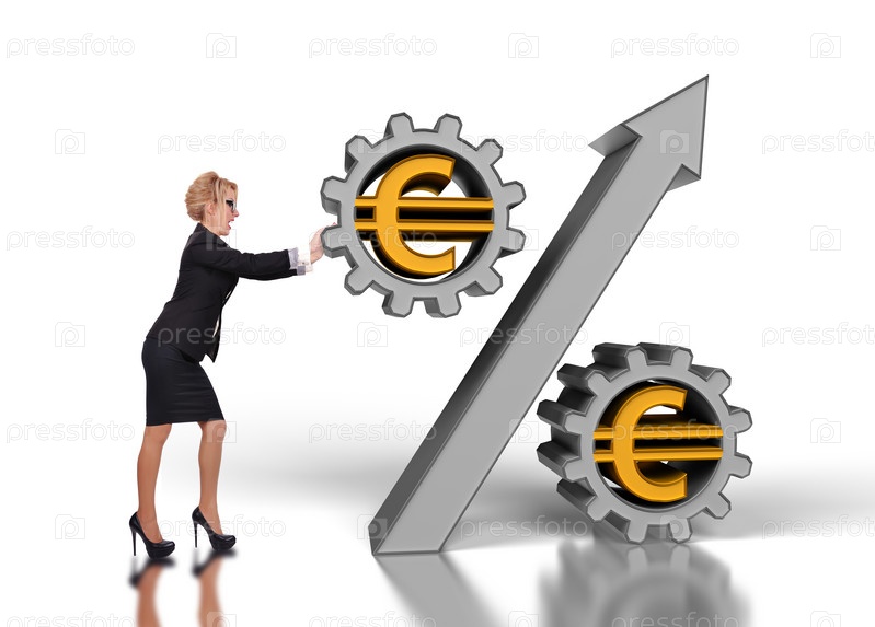 Бизнес-леди толкает знак процента