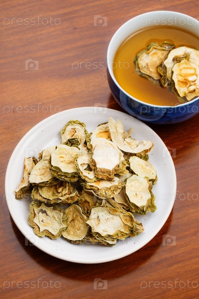 Сухая горькая дыня и чай