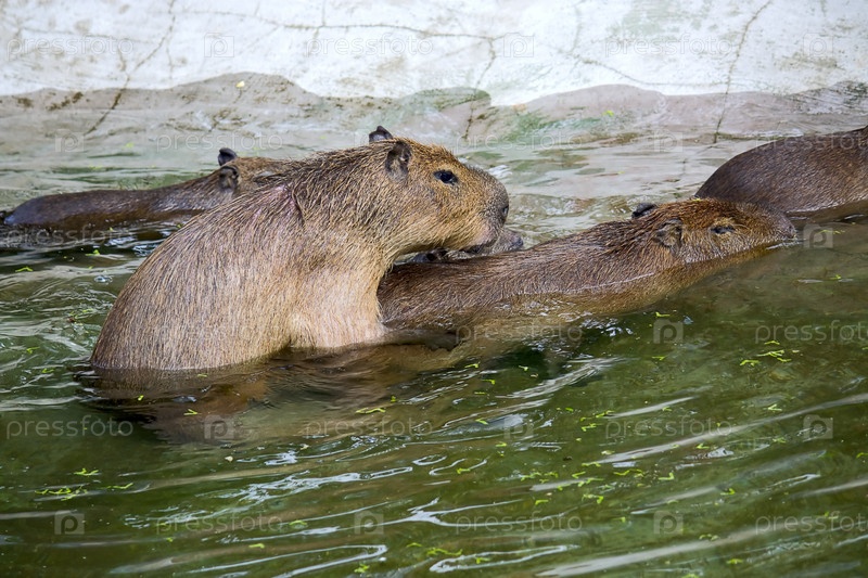 Капибары во время процесса спаривания в зоопарке