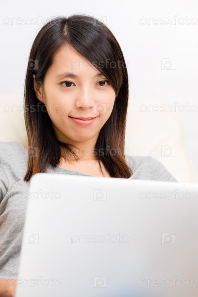 Азиатская женщина с ноутбуком