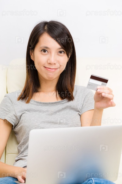 Азиатская женщина делает онлайновые покупки