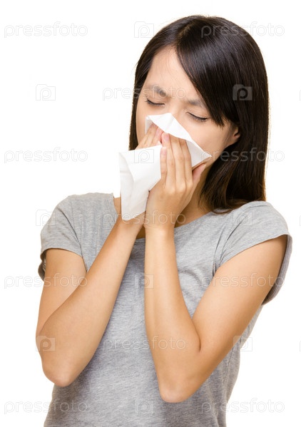Чихающая азиатская женщина