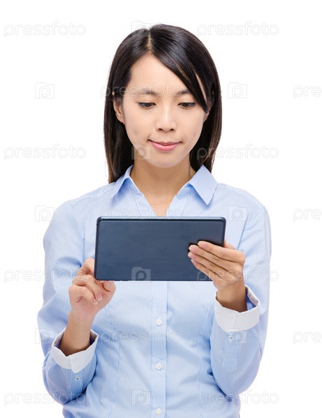 Азиатская женщина с планшетом
