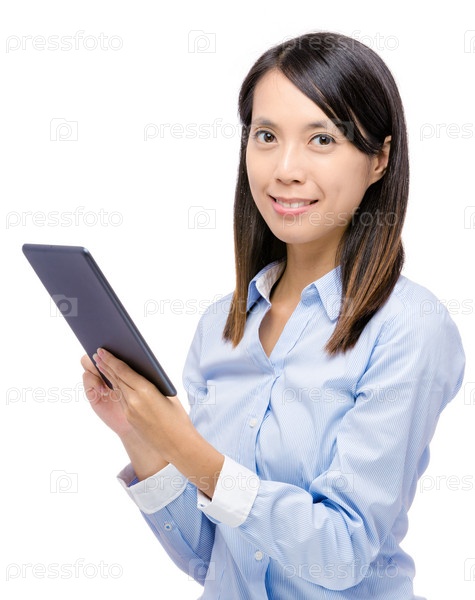 Азиатская женщина с планшетом