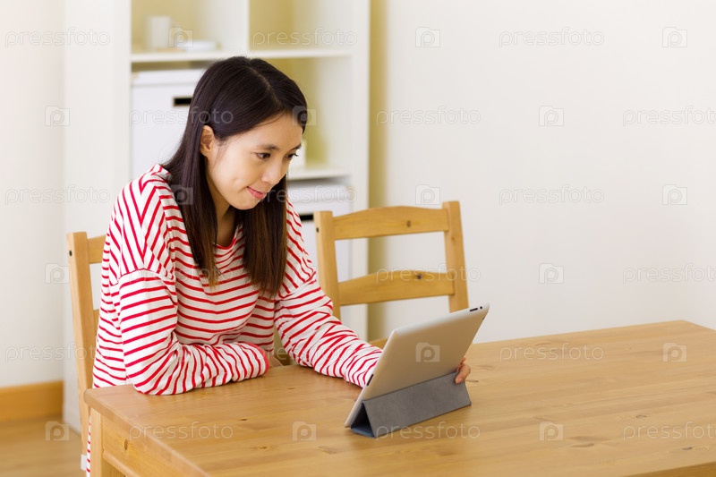 Азиатская женщина с цифровым планшетом