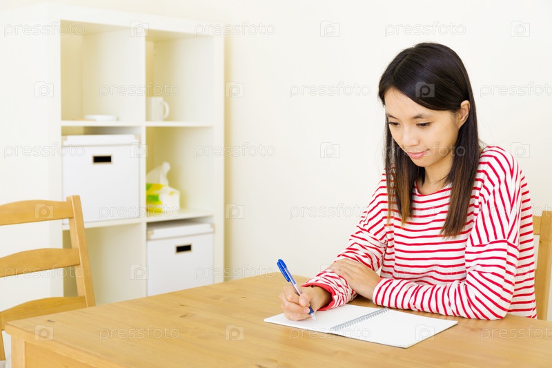 Азиатская женщина пишет в блокноте