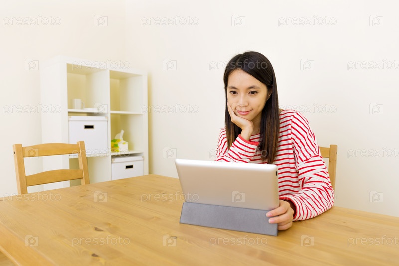 Азиатская женщина с планшетом