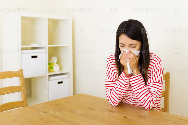 Чихающая азиатская женщина