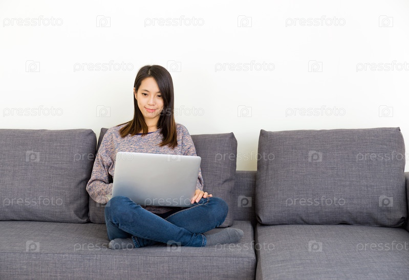 Азиатская женщина с ноутбуком