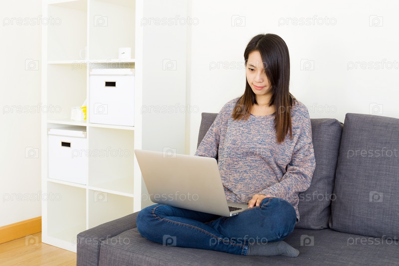 Азиатская женщина с ноутбуком