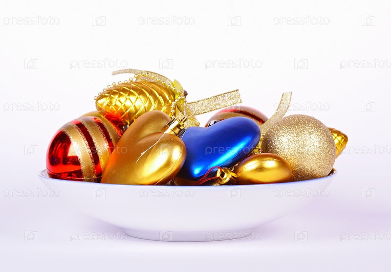 Тарелка с новогодними украшениями