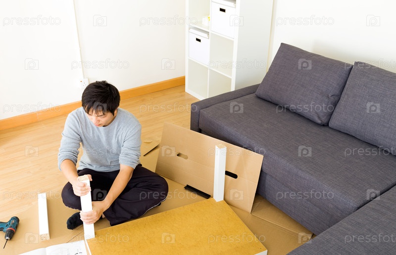 Мужчина собирает стол