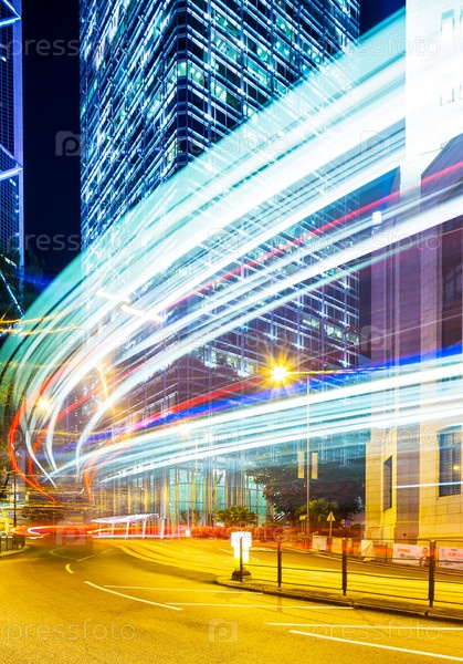 Оживленное движение в ночном Гонконге