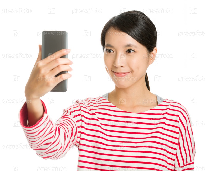 Азиатская девушка фотографирует себя телефоном