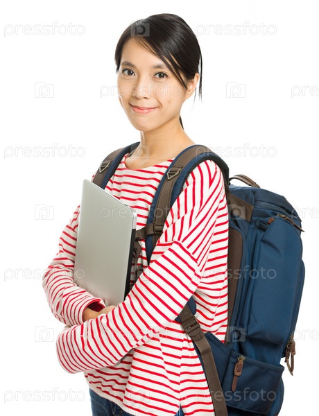 Студентка с компьютером и рюкзаком