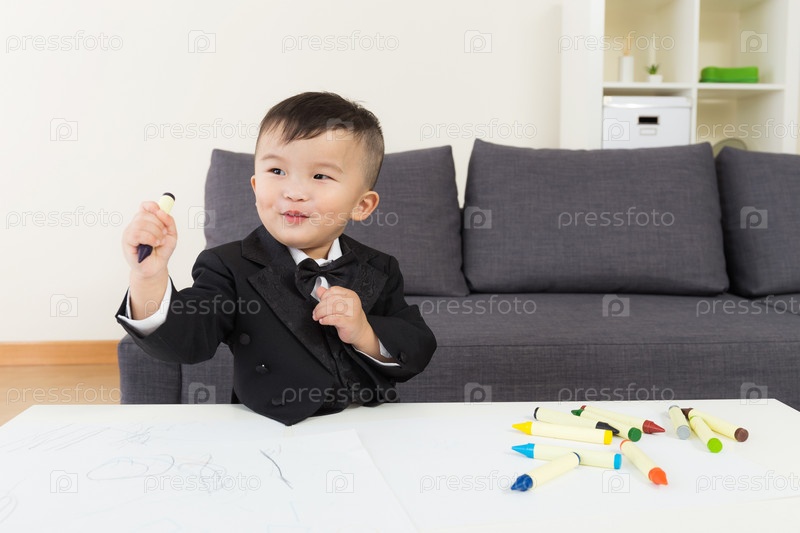 Азиатский мальчик рисует