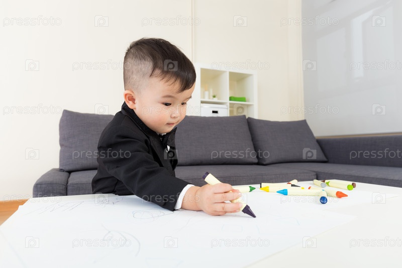 Азиатский мальчик рисует
