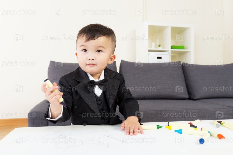 Азиатский мальчик рисует за столом