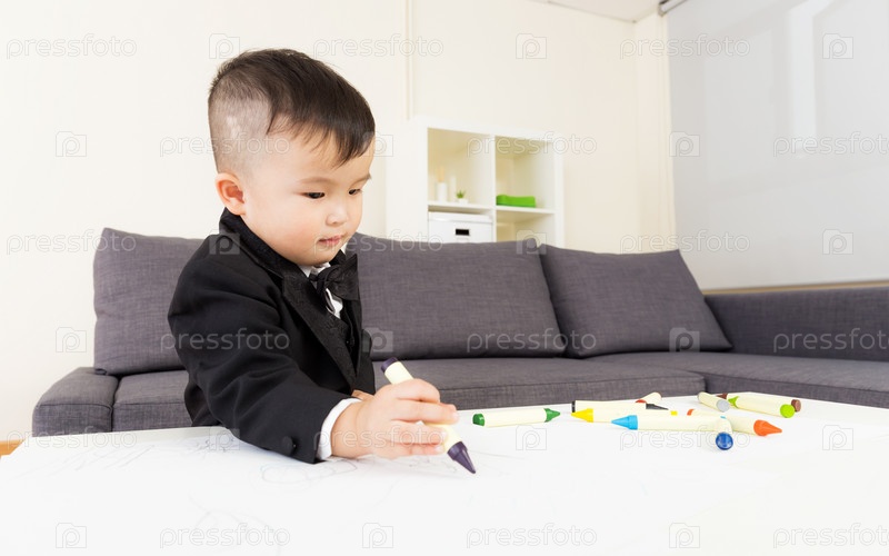Азиатский мальчик рисует за столом