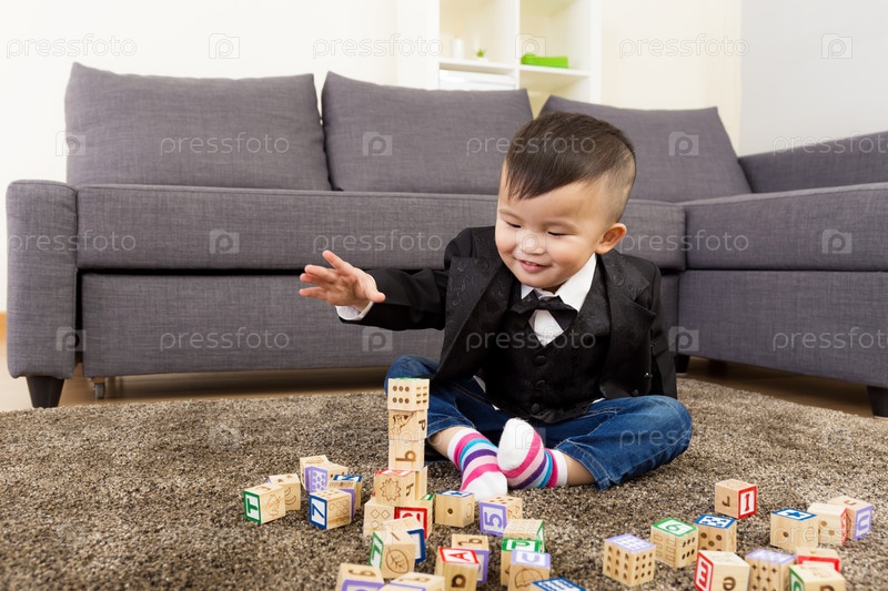 Маленький мальчик играет с кубиками