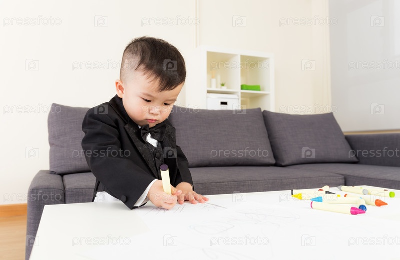Азиатский мальчик рисует за столом