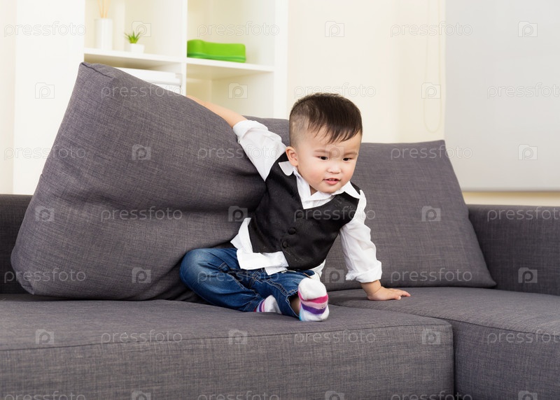 Маленький ребенок сидит на диване
