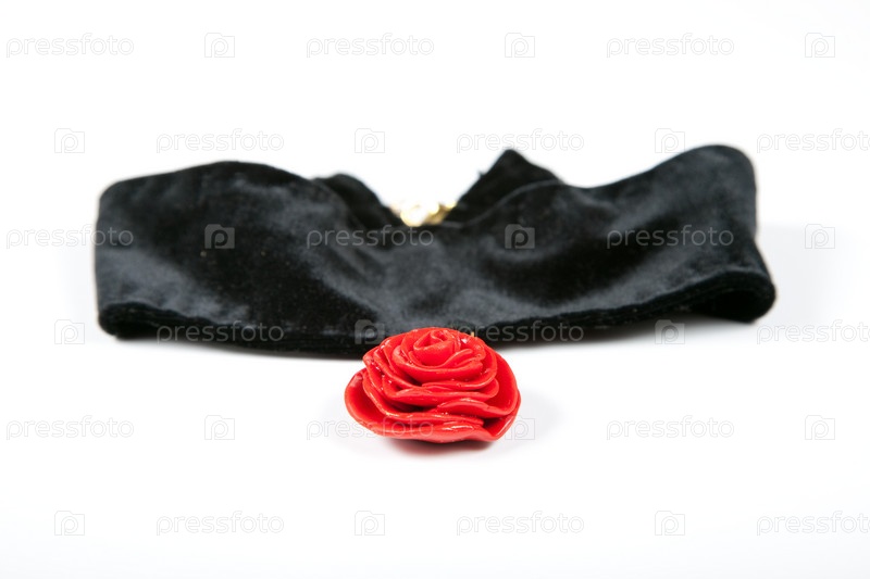 Украшение на шею в виде красной розы из полимерной глины и бархотки