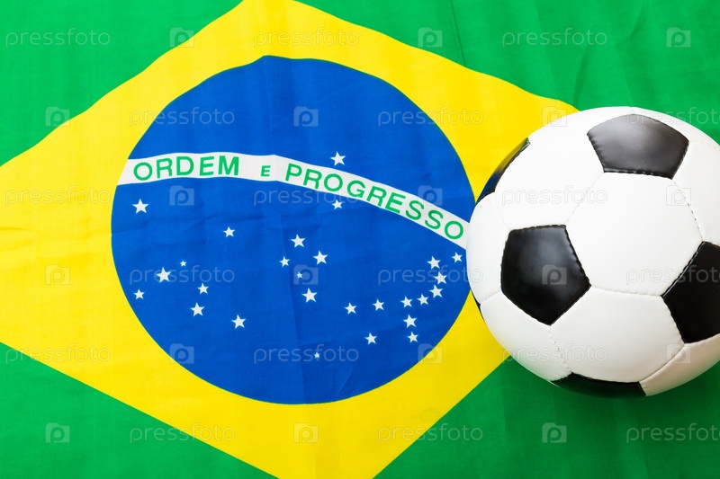 Флаг Бразилии и футбольный мяч