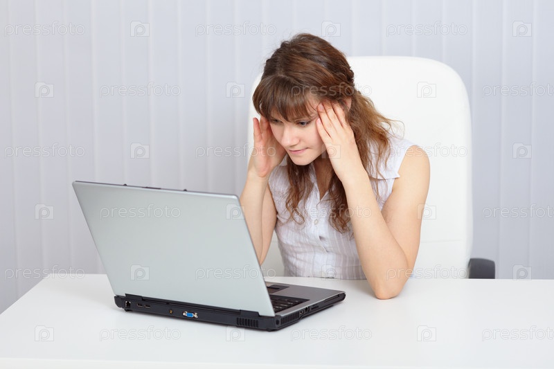 Молоденькая студентка готовится за ноутбуком