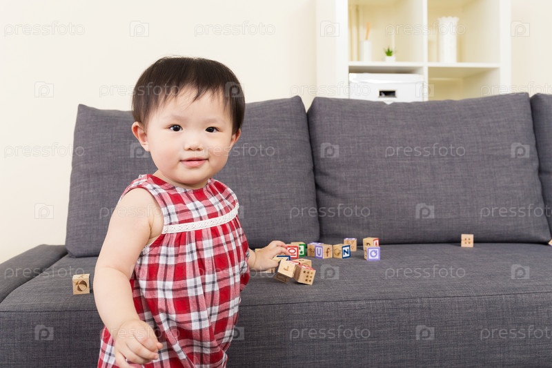 Азиатская девочка играет с кубиками