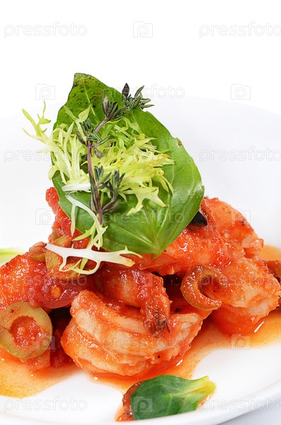 Креветки в томатном соусе с оливками