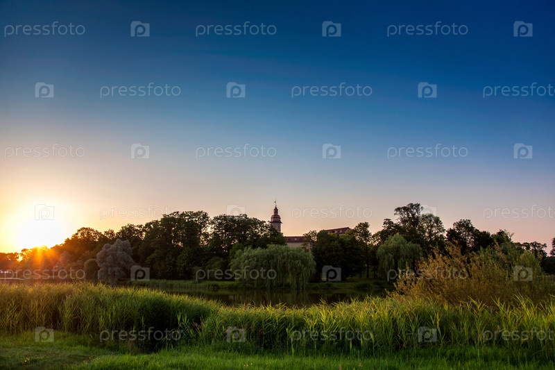 Живописный закат на набережной в Несвиже