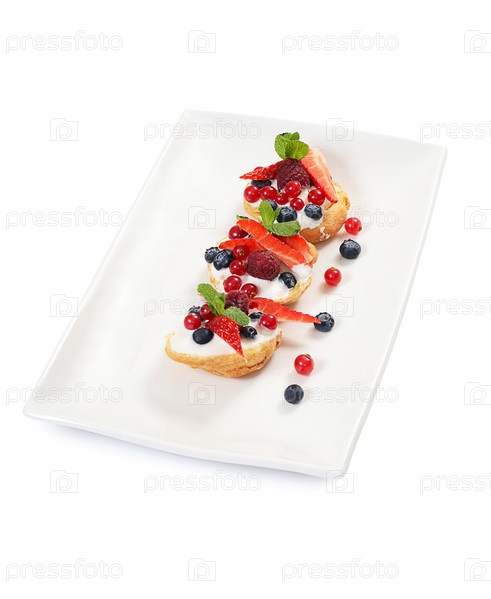 Профитроли с ягодами смородины, клубники и черники
