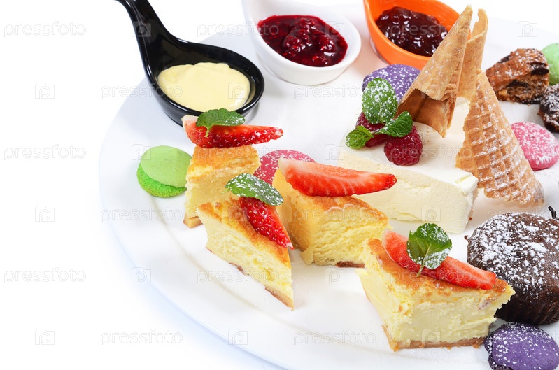 Различные десерты на тарелке
