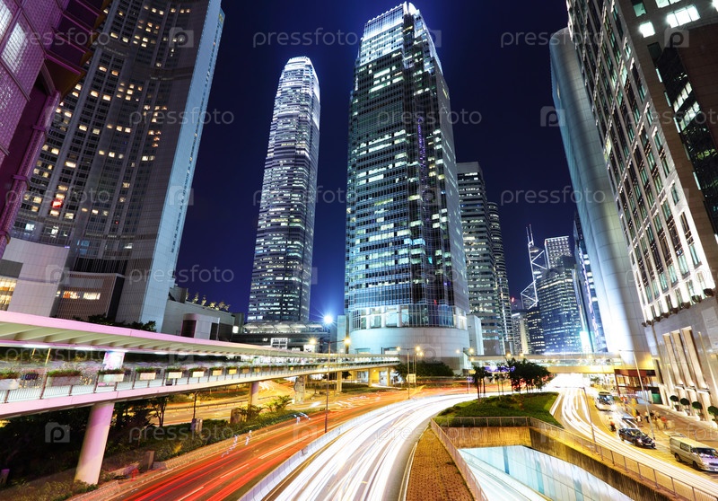 Оживленная дорога в ночном Гонконге