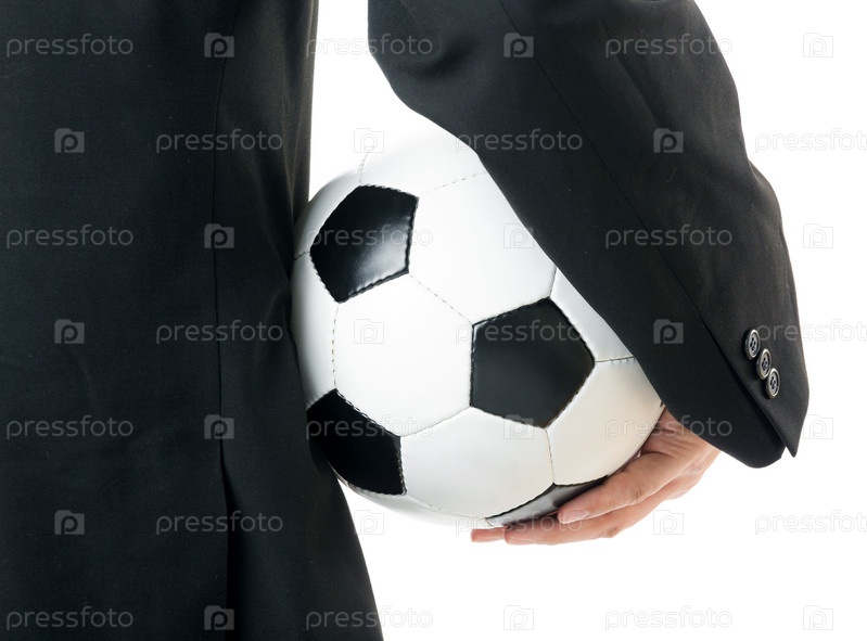 Бизнесмен держит футбольный мяч