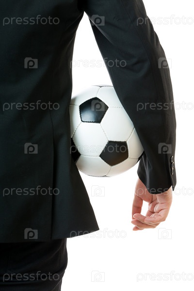 Бизнесмен держит футбольный мяч