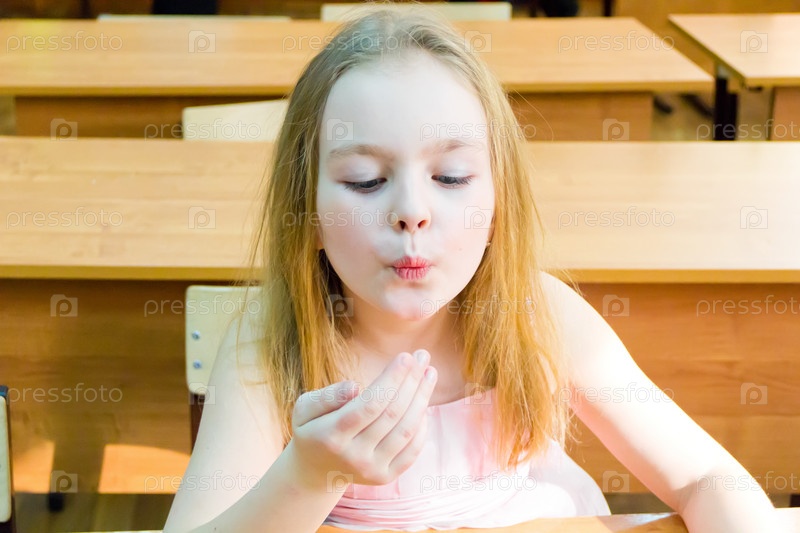 Школьница дует на палец
