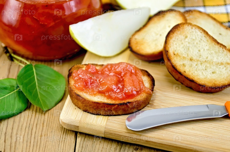 Хлеб с грушевым джемом на доске
