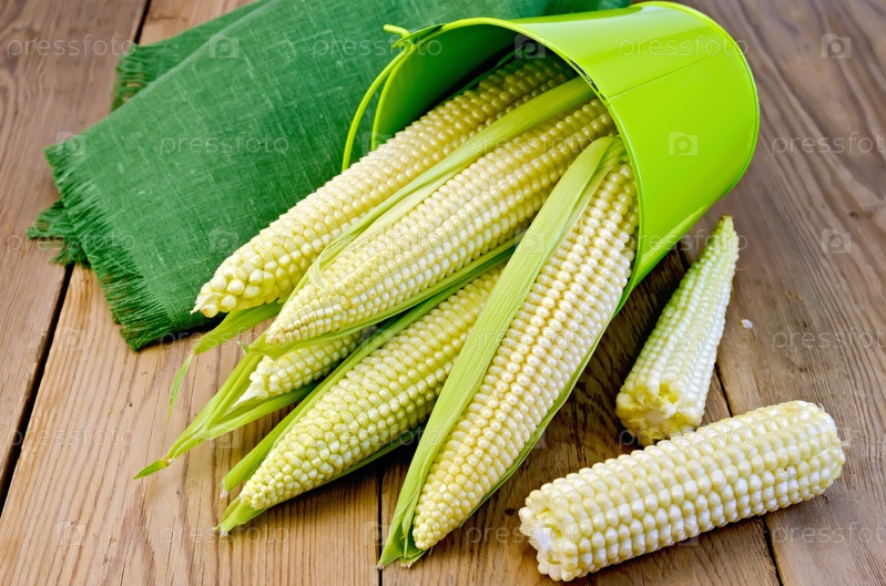 Кукурузные початки с ведром на доске