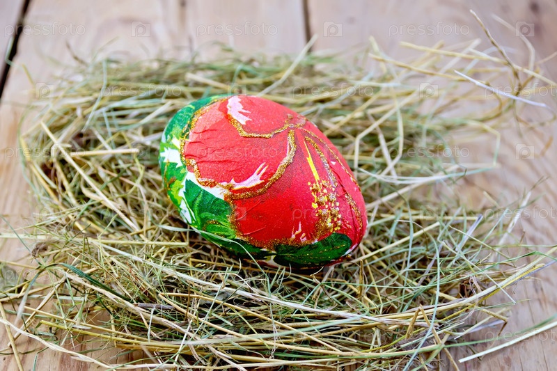 Пасхальное яйцо с красным цветком на доске