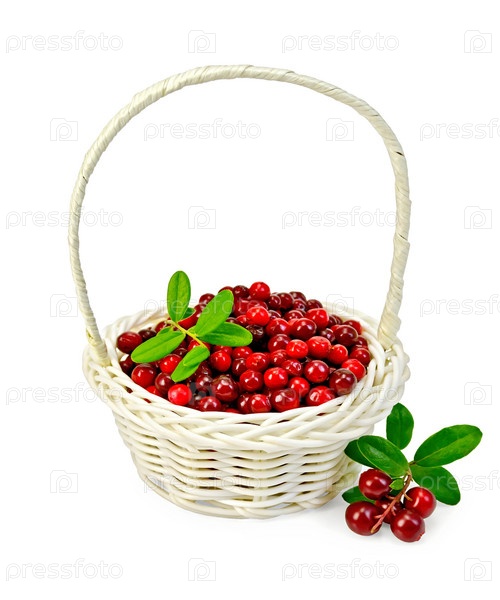 Брусника в белой корзине