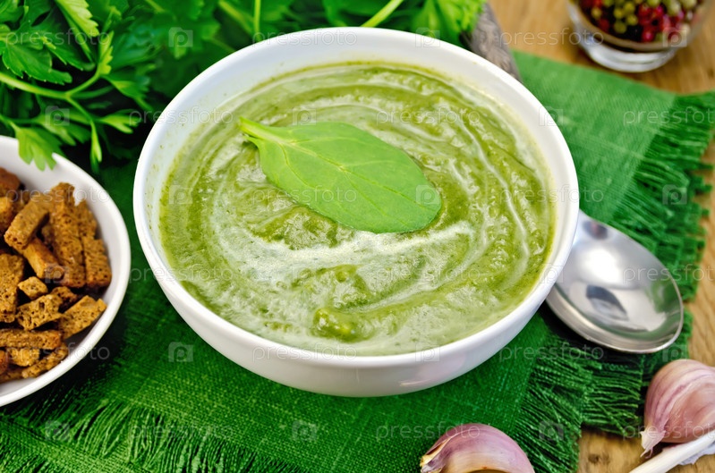 Зеленый суп-пюре со шпинатом и сухариками